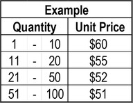 To predict pricing for quantities not quoted, use the formula P=F/Q + V*, where P = Price, F= Fixed Cost Q= Quantity and V = Equals Variable Costs (direct labor, direct material, variable overhead and profit).